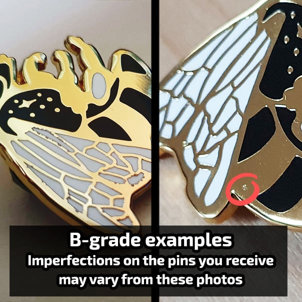 As enamel pins are handmade items, small imperfections can occur. I carefully inspect every single pin and sort them into different quality categories.