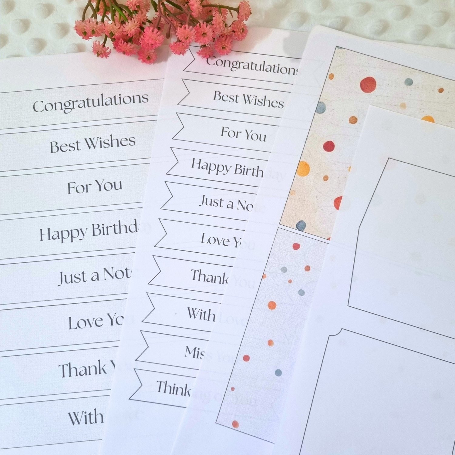 You will receive 2 ready-to-print PDF files with 25 sheets of card making elements and 3 sheets of card ideas to get you started and tips for using this kit.
