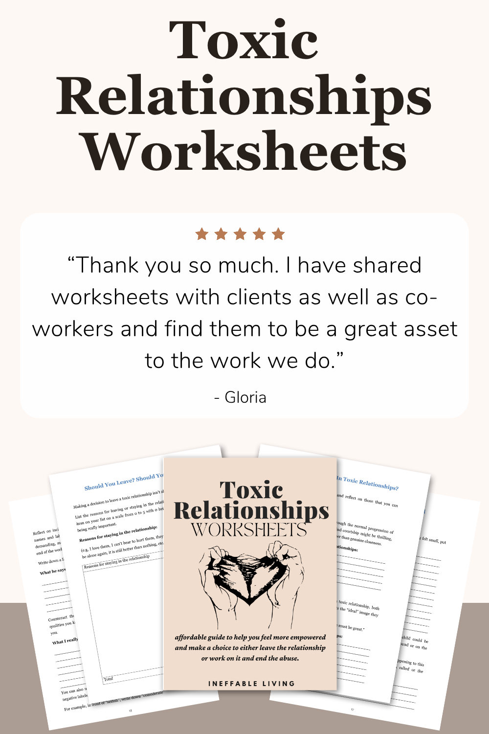 If so, these worksheets are ideal for anyone who is in a toxic relationship and needs an affordable guide to help them feel more empowered and make a choice to either LEAVE the relationship or STAY, work on it and end the abuse.