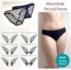 You will learn how to work with stretch fabrics and applying elastic. The pattern includes a photo instructions booklet with not only the method of how to make your Moontide Period Pants but also on how to measure for your size, information on technical fabrics used in these knickers and more!