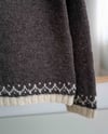 Shown in Vuonue Pentti Kampalanka (70% wool, 30% tencel; 262 yds / 240 m per 100 g skein), medium grey as MC and natural white as CC.