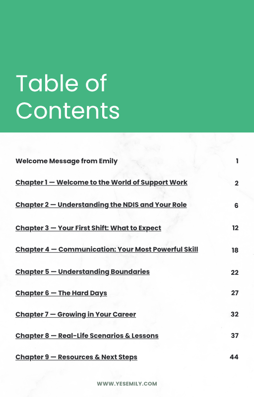 You want to do your best, but no one told you how to actually handle real-life NDIS work — communicating, writing notes, staying professional, and finding your rhythm on shift.