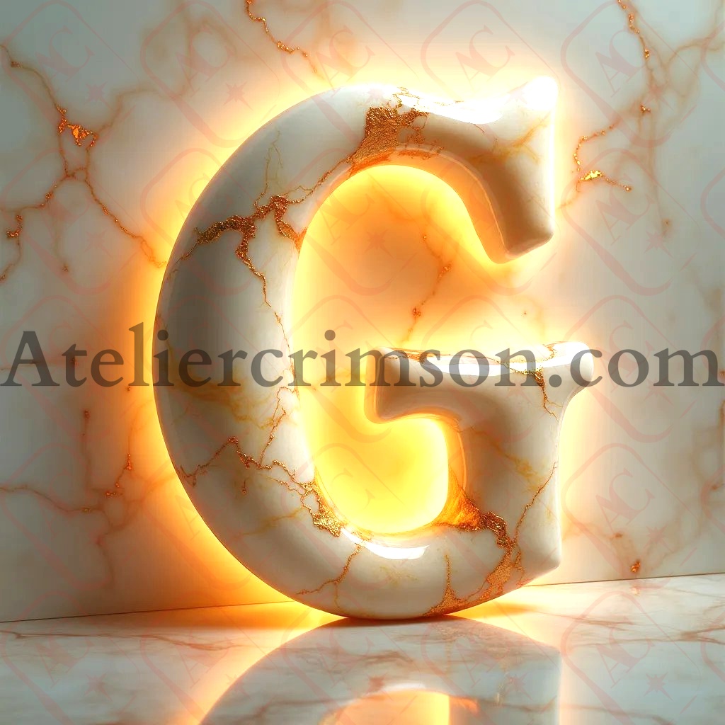 The letter G glowing creamy marble Download Now this high quality AI-generated image, perfect for adding a touch of tranquility and creativity to any space.