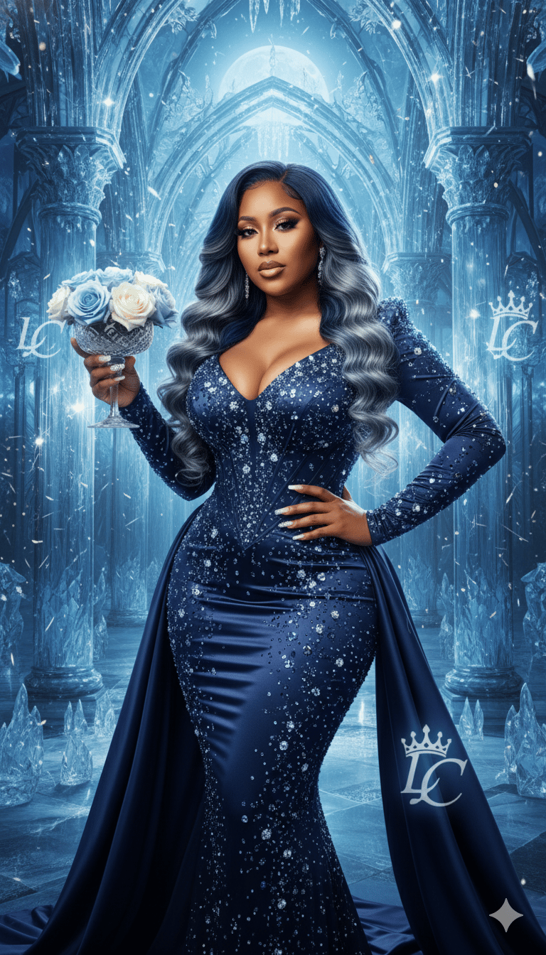 - Frosted elegance, rich fabrics, and cinematic lighting