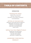If you follow the steps inside, you will not only come out on the other side with a product fully ready to sell, but you will also have an actual funnel and strategy for bringing in the sales that you need for $3k, $5k, and even $10k+ months!
