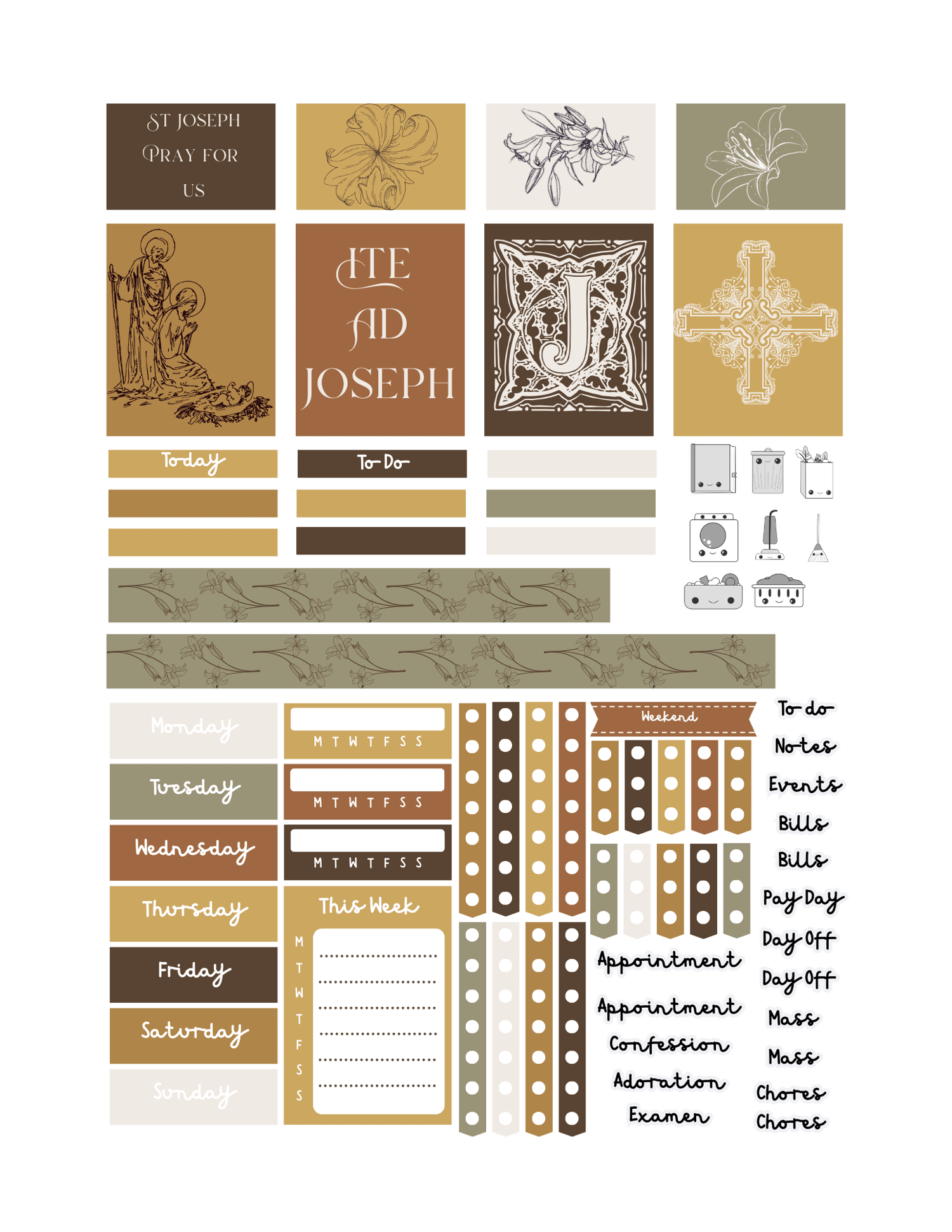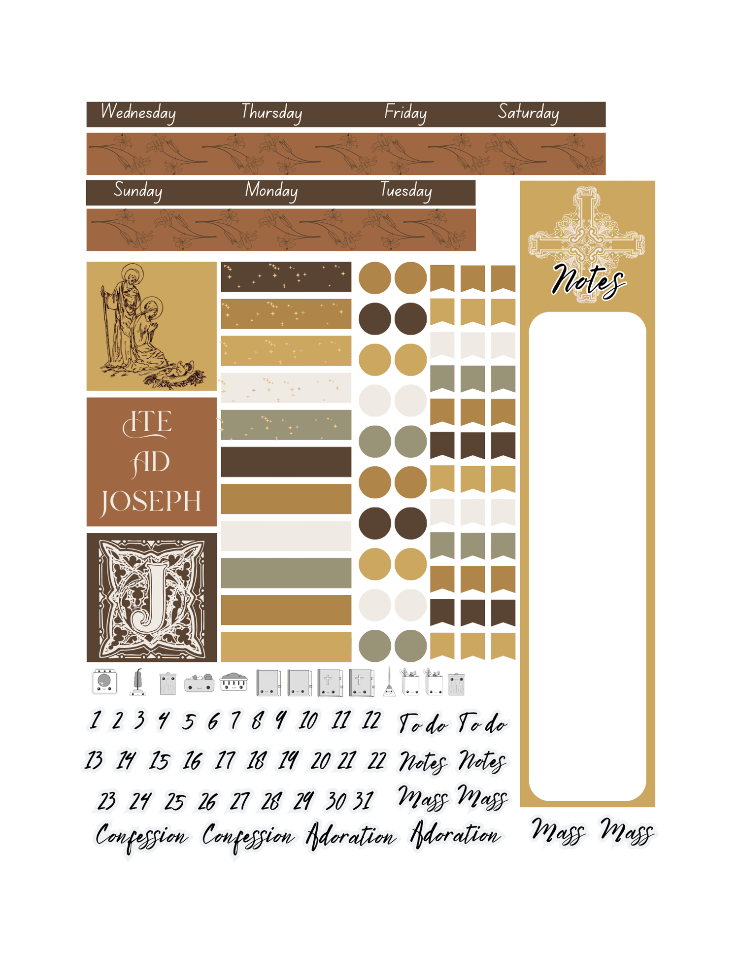 St. Joseph – Printable Monthly Planner Sticker Kit – Catholic – Vertical
