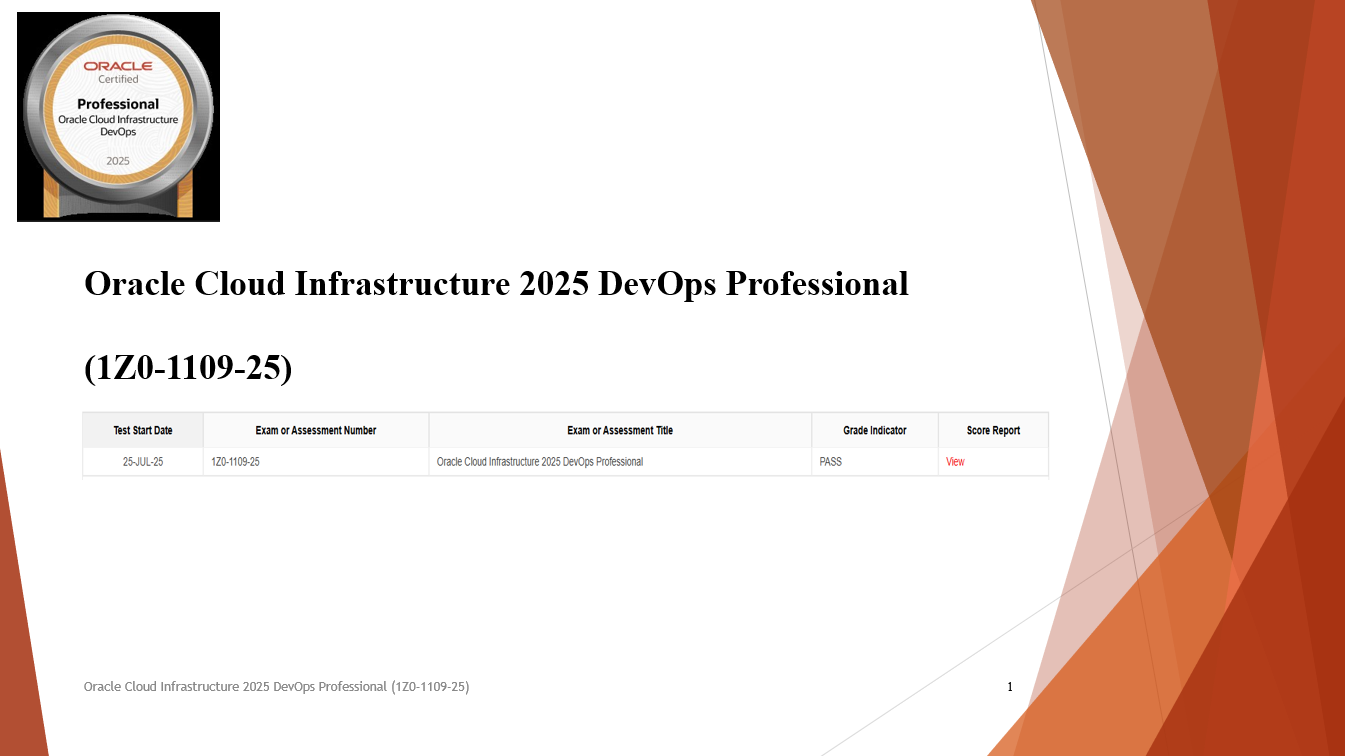 Exam Dump - Oracle Cloud Infrastructure 2025 DevOps Professional (1Z0-1109-25) Updated October 23, 2025 includes 88 questions and answers.