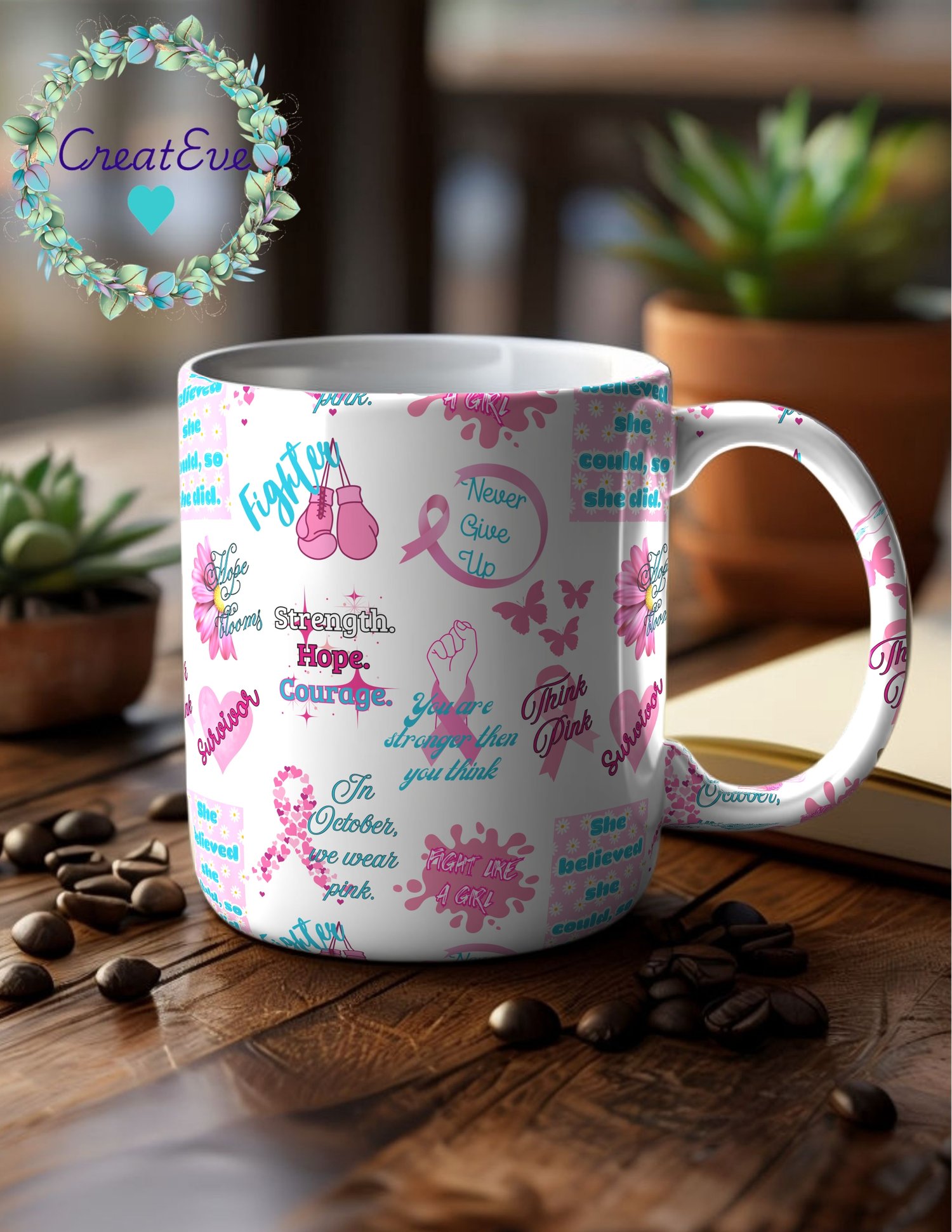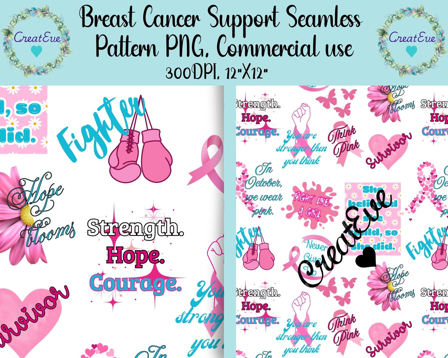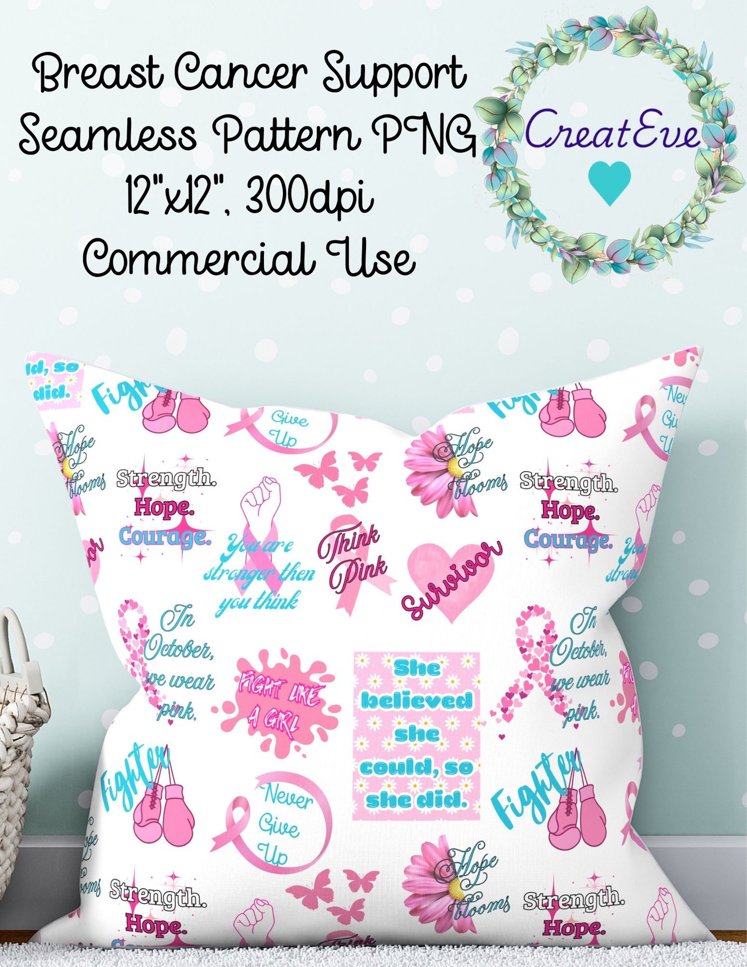 Breast Cancer Pink Ribbon Motivational Quote Seamless Pattern 12"x12", 300dpi, Commercial Use