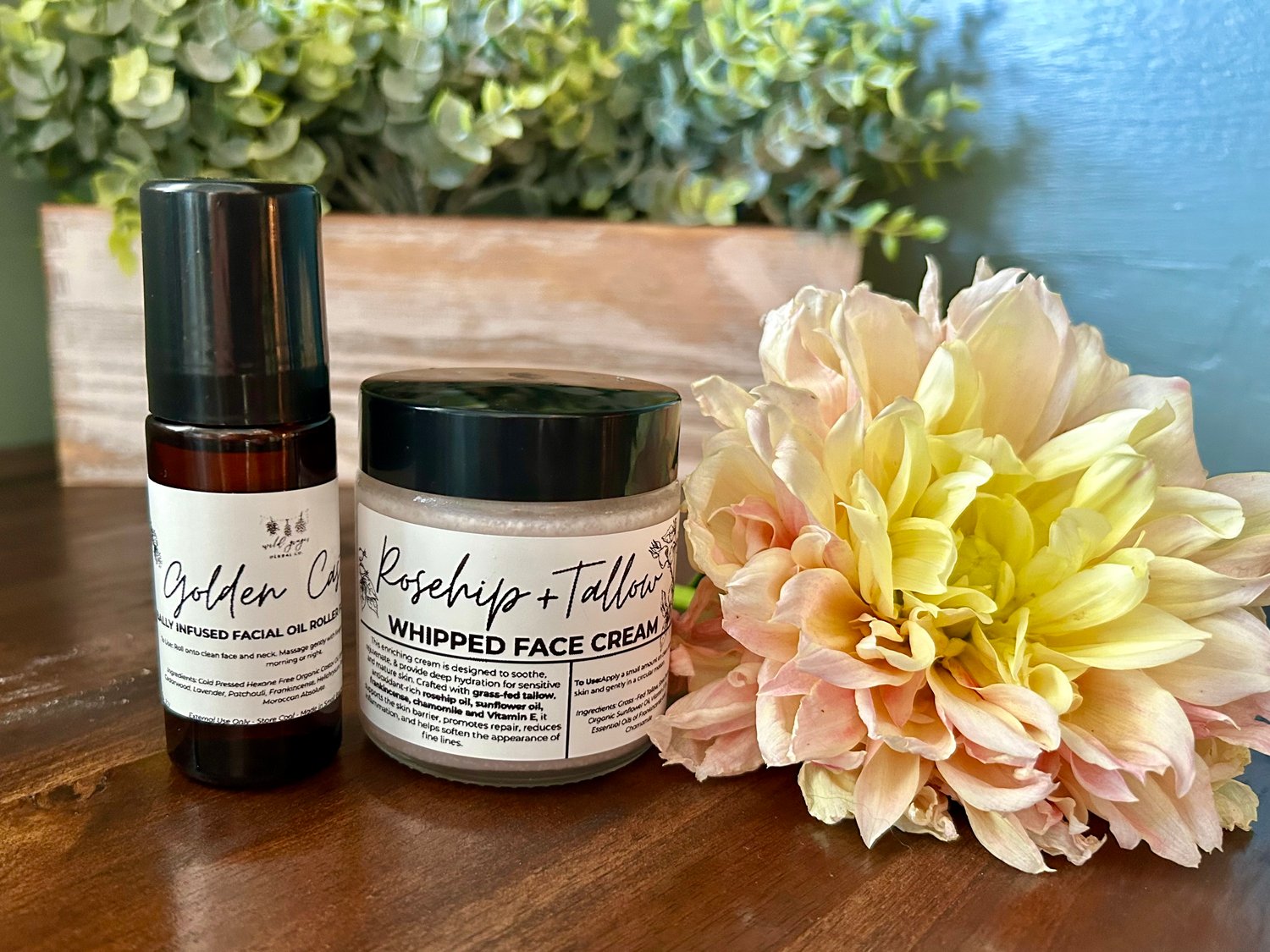 A velvety balm made with tallow, rosehip, sunflower oil, and frankincense, ideal for maturing, dry, or sensitive skin. Packed with vitamins A & E, it supports elasticity, scar reduction, and barrier repair.