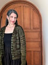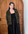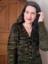 Pine Needle is knit seamlessly from the bottom up. The body is knit flat to the underarm, and after splitting for the arms the back and fronts are worked separately. The live stitches are then seamed together at the shoulder. The sleeves are worked in the round from the shoulder to the cuffs, and the button band is worked last. The pattern includes instructions for both a cropped and standard body length.