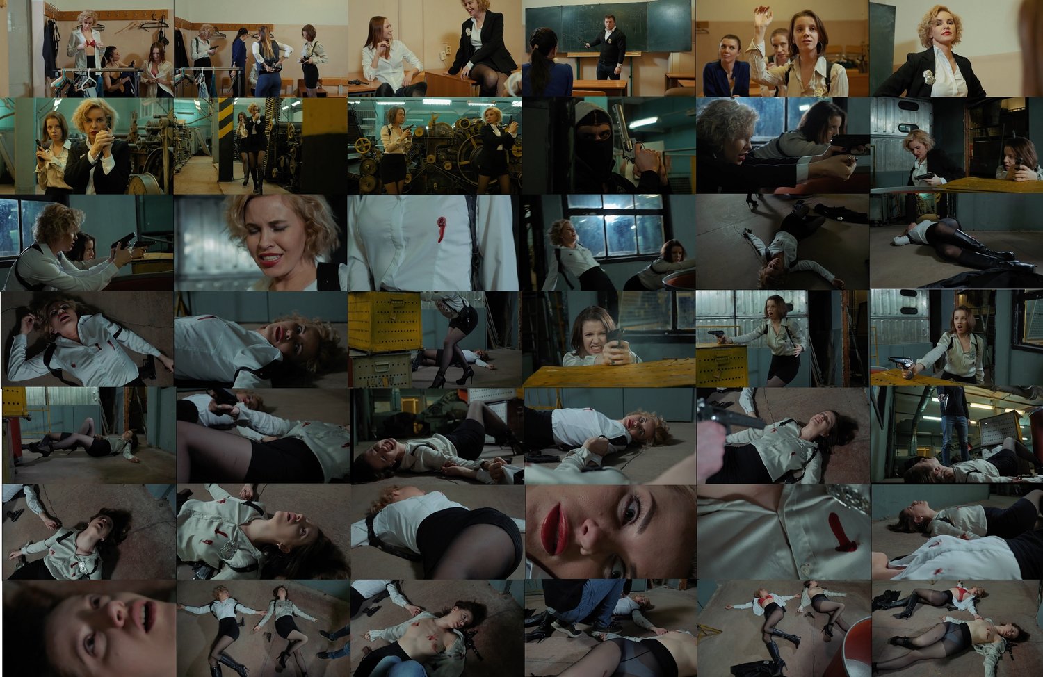 Bella, devastated by the sight of Olga’s lifeless form, fights back with determination but is soon struck by two bullets in her chest. She collapses, overwhelmed by pain and fear, dropping her weapon. In desperation, she reaches for Olga’s hand, staring into her fallen partner’s unseeing eyes, which seem almost glass-like. Bella’s breaths are heavy with panic. The gangster approaches, preparing to end her life. No longer the confident officer, Bella is a young woman gripped by fear, pleading, “No, please, don’t!” Despite her cries, the gangster fires a final shot to her chest. Bella’s face freezes in a mix of shock, despair, and disbelief as she succumbs.