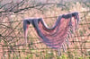 Construction: This shawl is cast on at the bottom tip, and worked to the top edge in alternating garter stitch and stockinette stitch stripes, with a 2 st garter edging on each side.