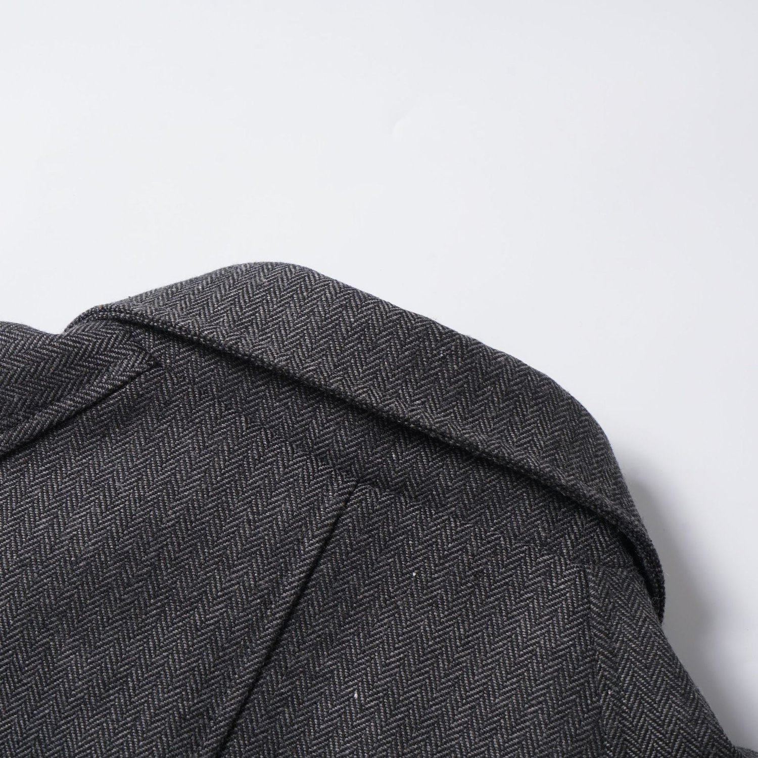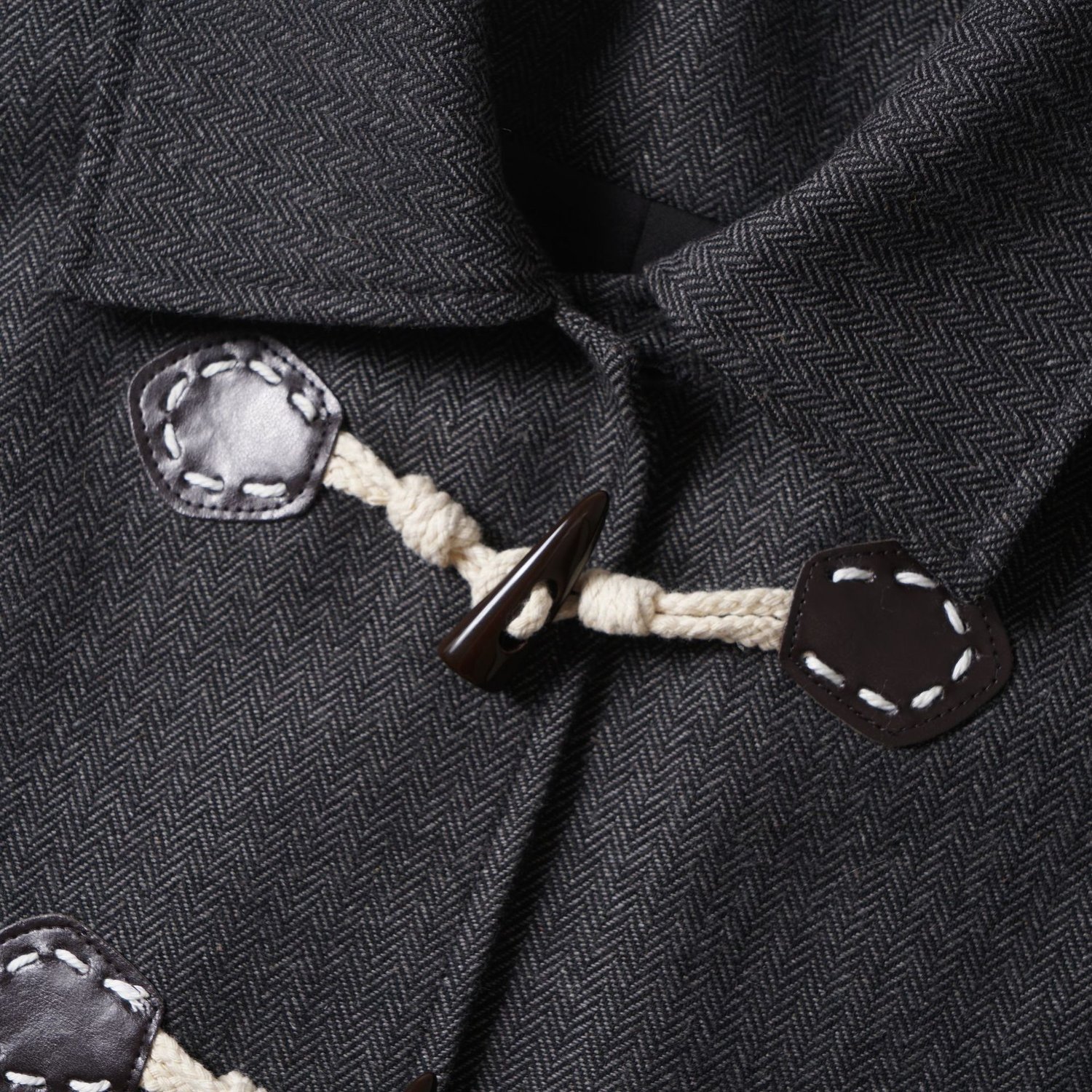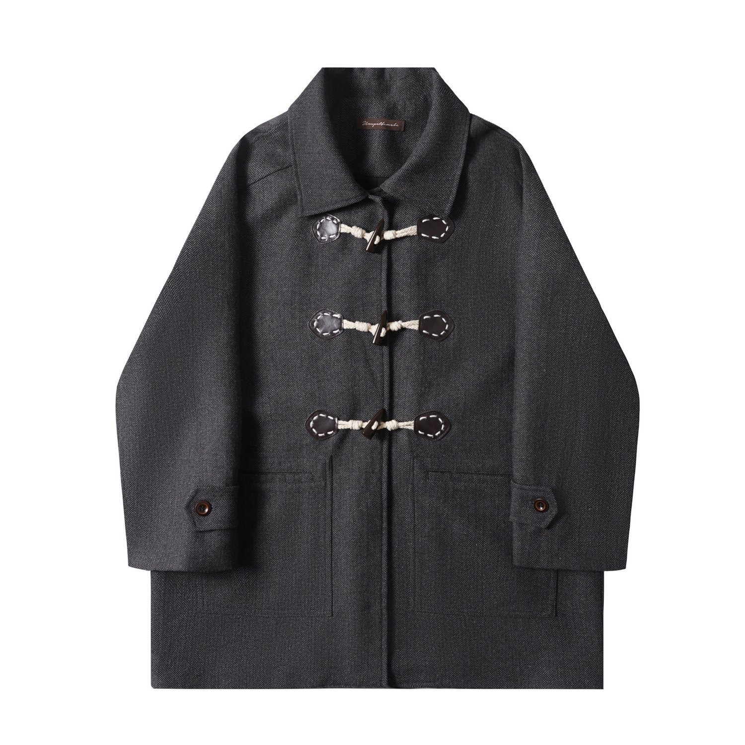 Retro preppy style minimal loose black horn button mid-length duffle coat