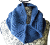 This cowl is knitted in the round. Loose cast on and bind off edges are necessary so that the edges will make attractive points when blocked.