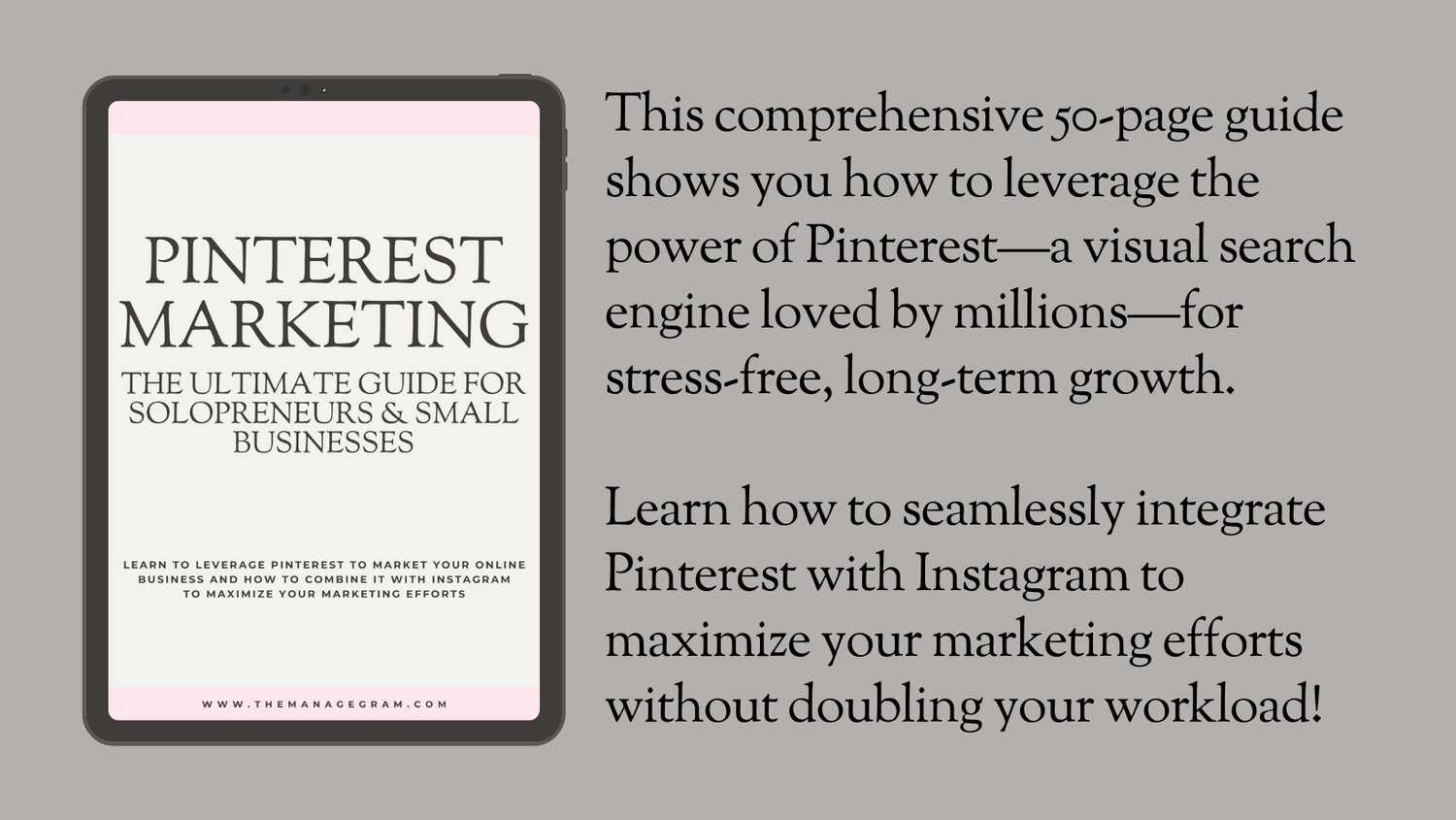 Whether you're a Pinterest newbie or looking to integrate it with Instagram, this e-book is packed with actionable tips and strategies to grow your online business and reduce burnout.
