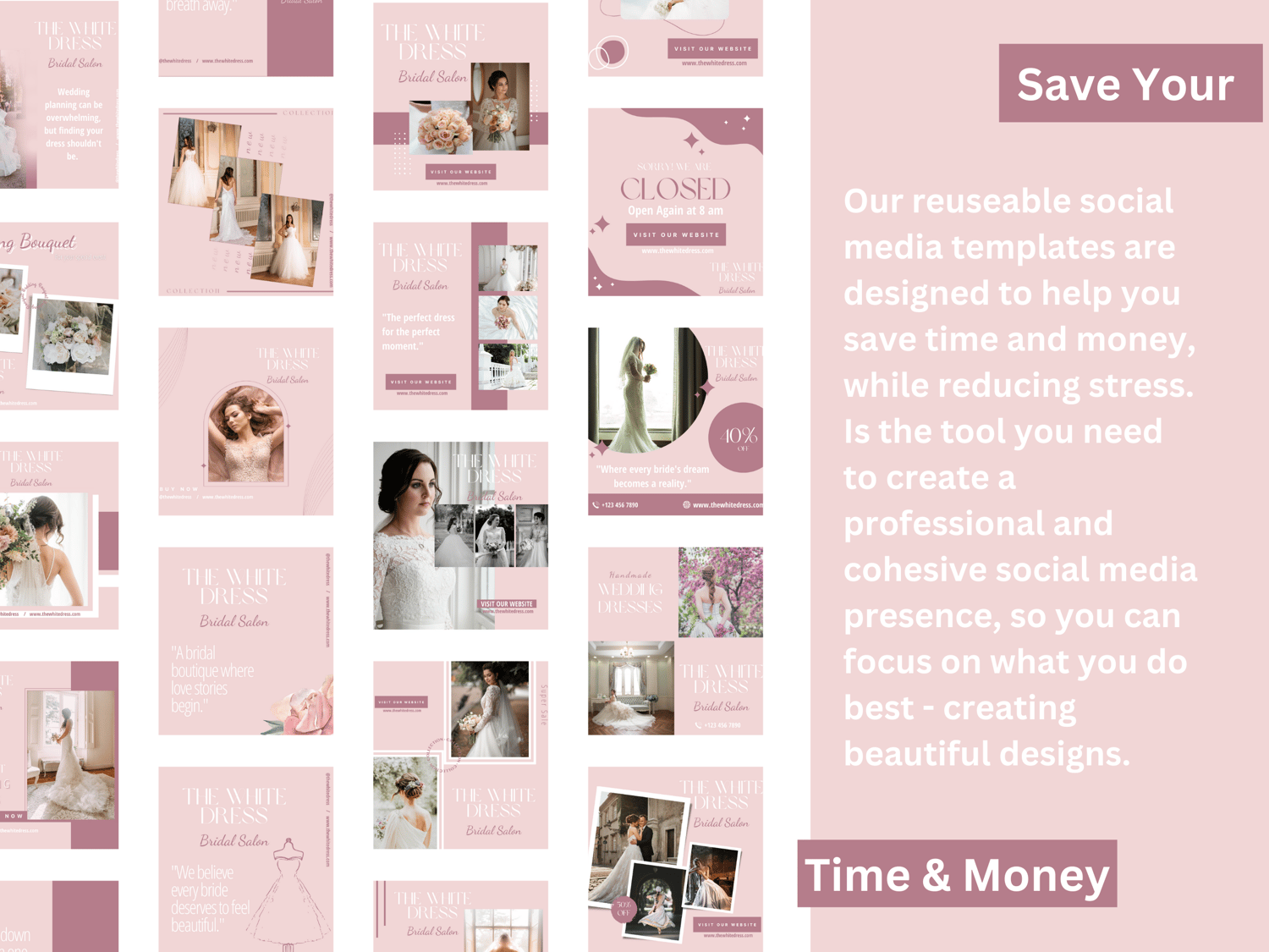 Buy our templates today and start creating stunning posts that will make your bridal salon shine on Instagram!