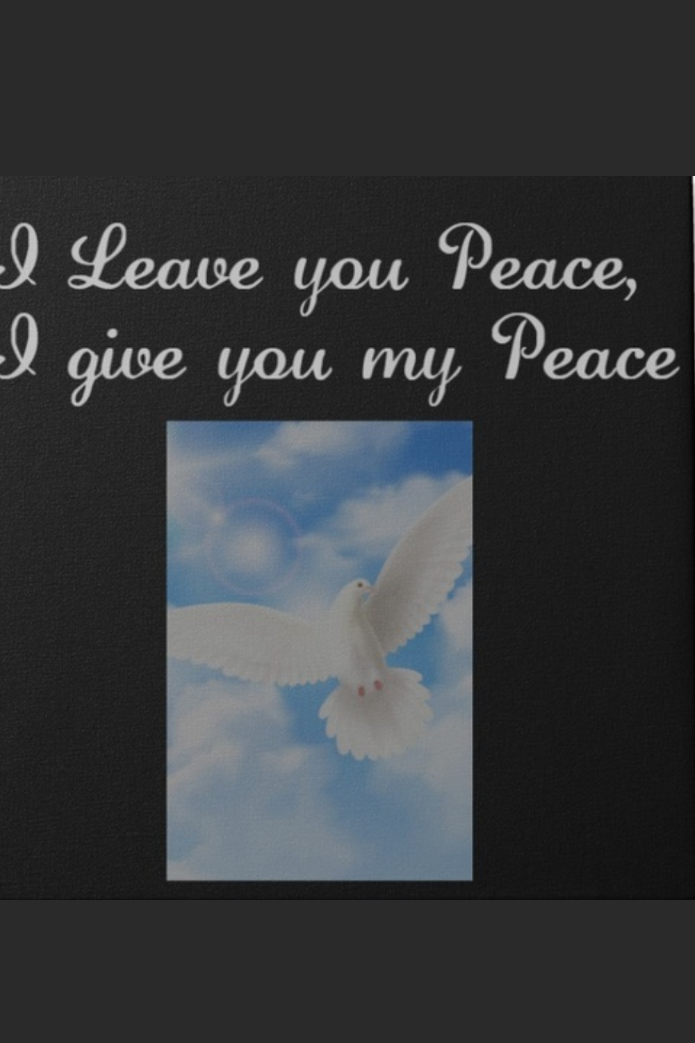 speaks of the peace Jesus gives—calm, unshakable, and unlike the world’s. A peaceful sunrise, gentle dove, or still waters can reflect this deep comfort. It’s a reminder to trust, let go of fear, and rest in His everlasting peace.