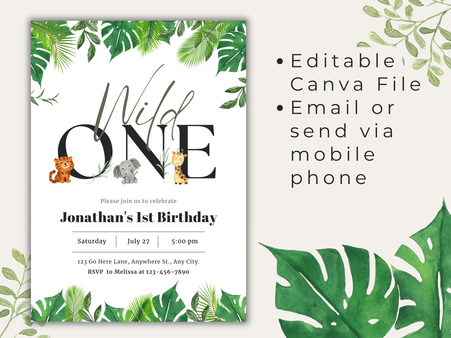 Roar into excitement and adventure with our "Wild One" birthday invitation printable!