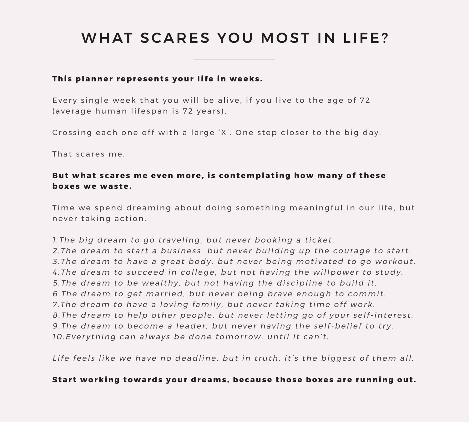 This planner represents your life in weeks.