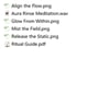 • Optional tools (crystals, sprays, essential oils, light movement)