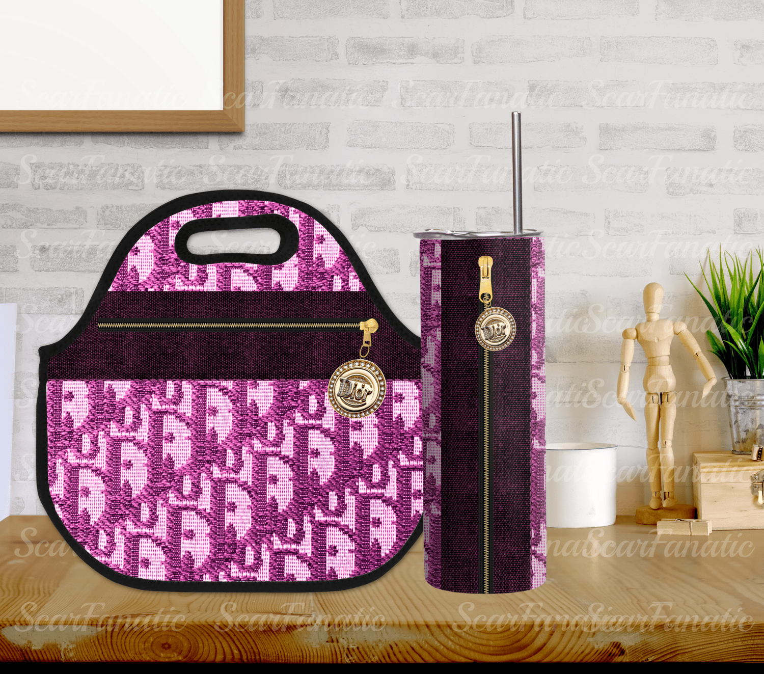 Pink Dor Denim Purse Look 20oz Zipper Tumbler and Lunch Tote PNG Design Bundle