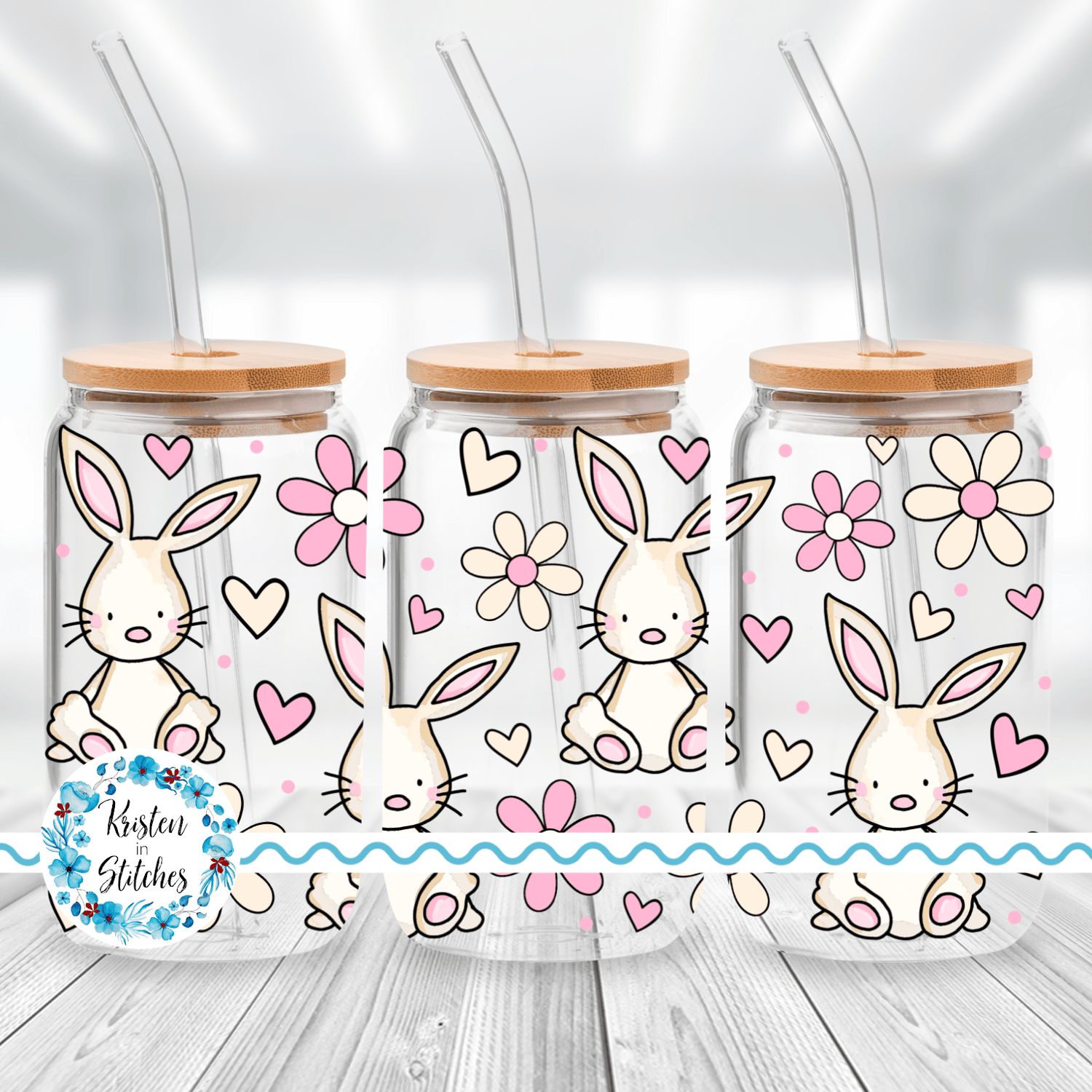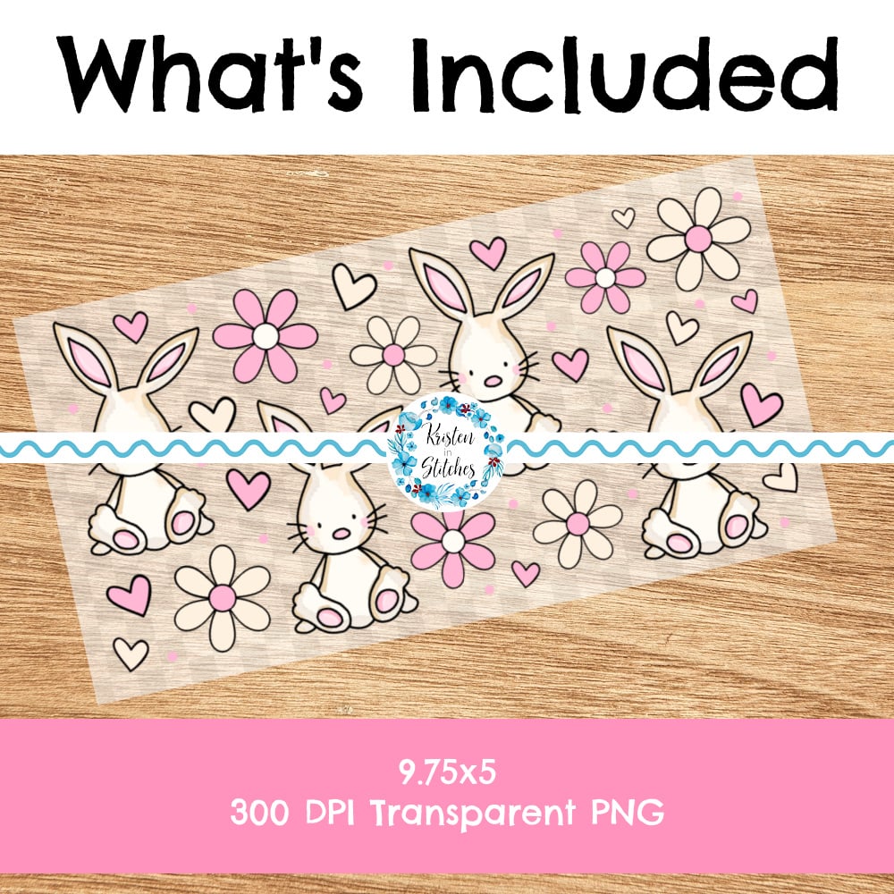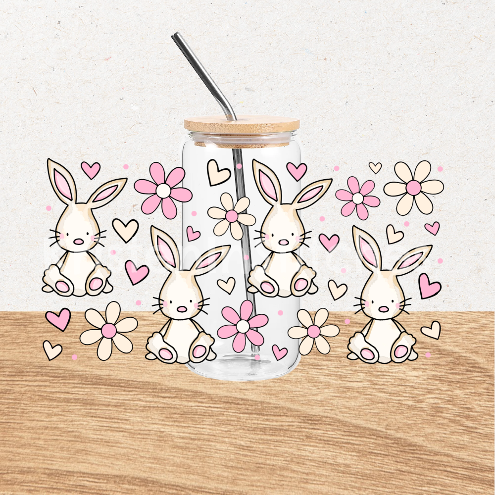 Spring Bunnies and Daisy Flowers Glass Can Wrap Transparent PNG, Easter Bunny, Pink