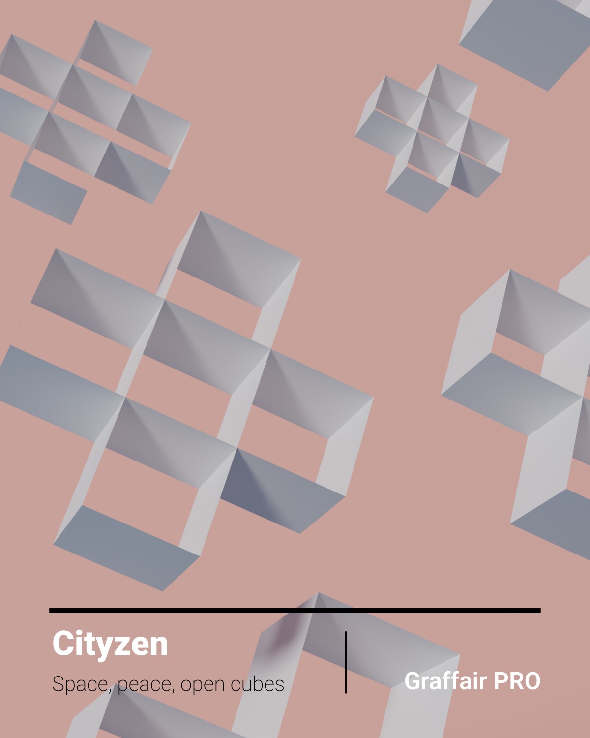 Cityzen: A composition of open cubed X's, or crosses if you like to say, floating into space. The image visualizes peace and spirituality in space using simplicity, geometry, and perspective.