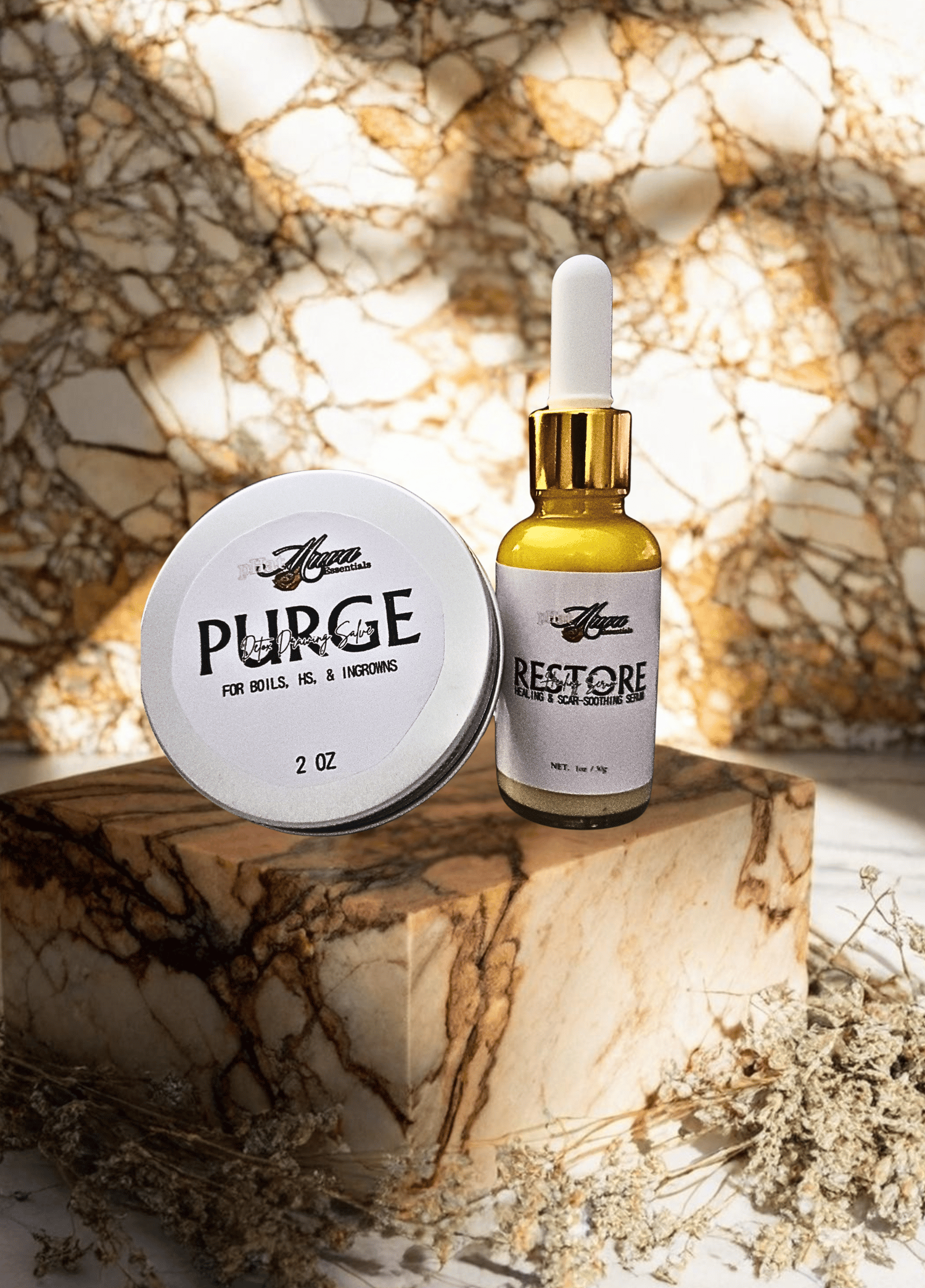 PURGE Drawing Salve goes to work first — a potent herbal-infused balm formulated to draw out impurities, reduce swelling, and support healing from deep within. It's your first line of defense against flare-ups, designed to purge infection and calm irritation fast.