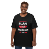 This "Plan Your Freedom" t-shirt is everything you've dreamed of and more. It feels soft and lightweight, with the right amount of stretch. It's comfortable and flattering for all.