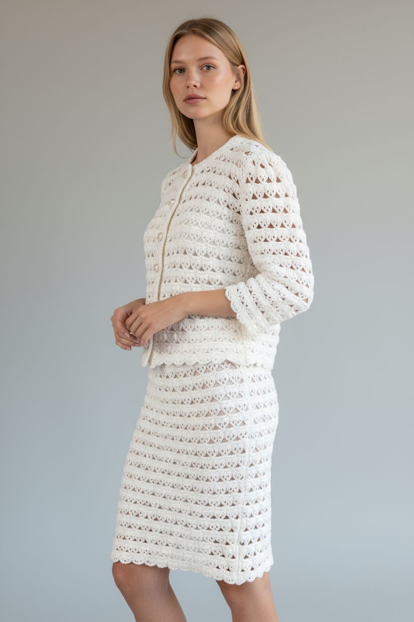 This digital download includes detailed step-by-step instructions to crochet a chic skirt and jacket, perfect for any season.