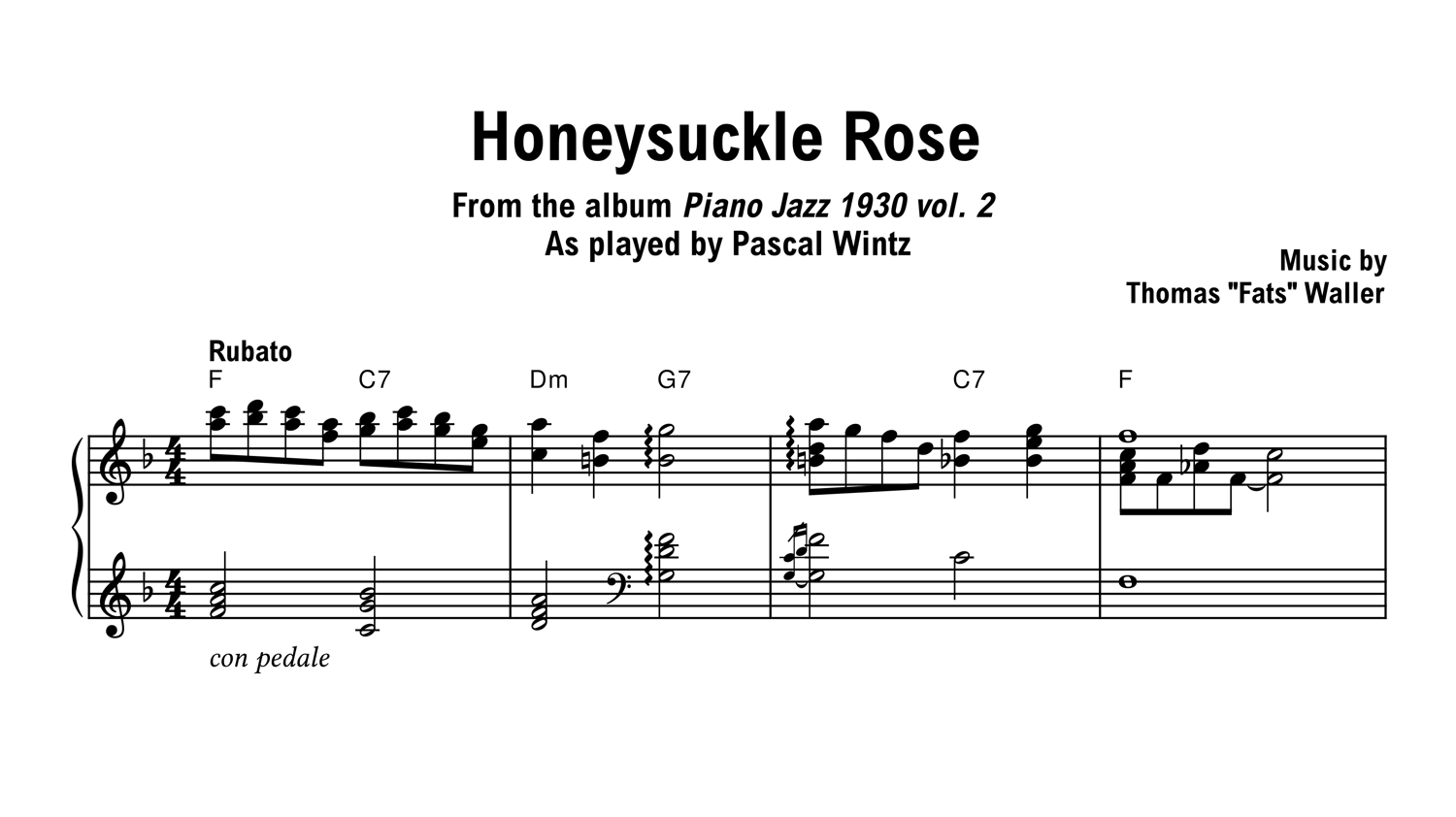 Sheet music of Honeysuckle Rose, as played by Pascal Wintz.