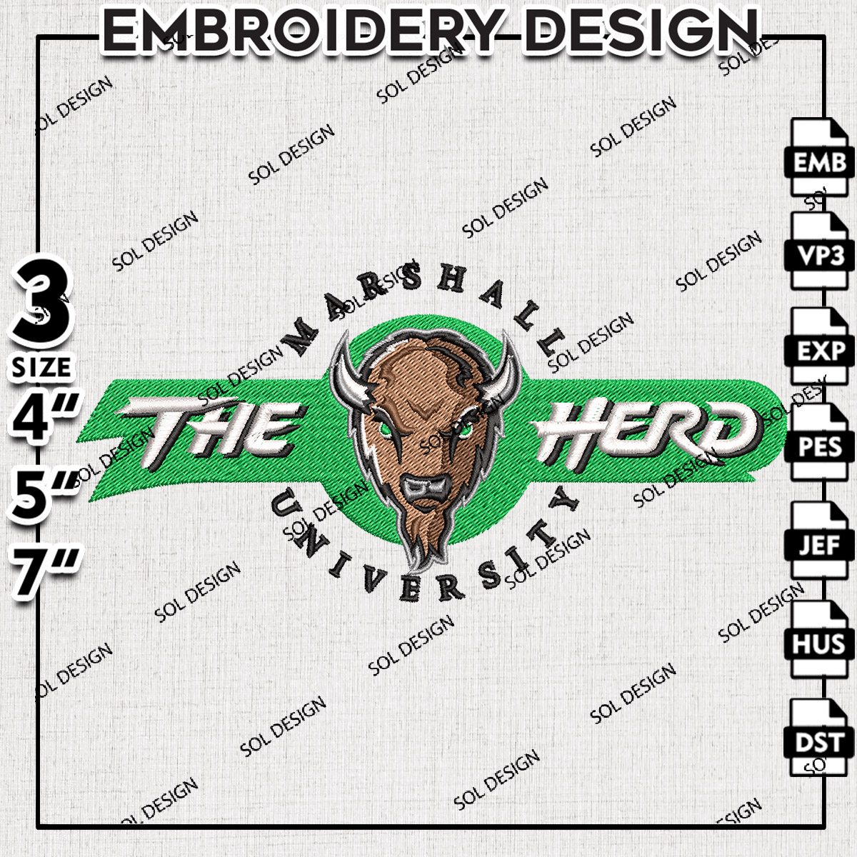 The Herd Football Team Logo Embroidery Files, NCAA Marshall Thundering Herd Football Team Embroidery, NCAA Teams, Game Days, Machine embroidery designs, Digital Download