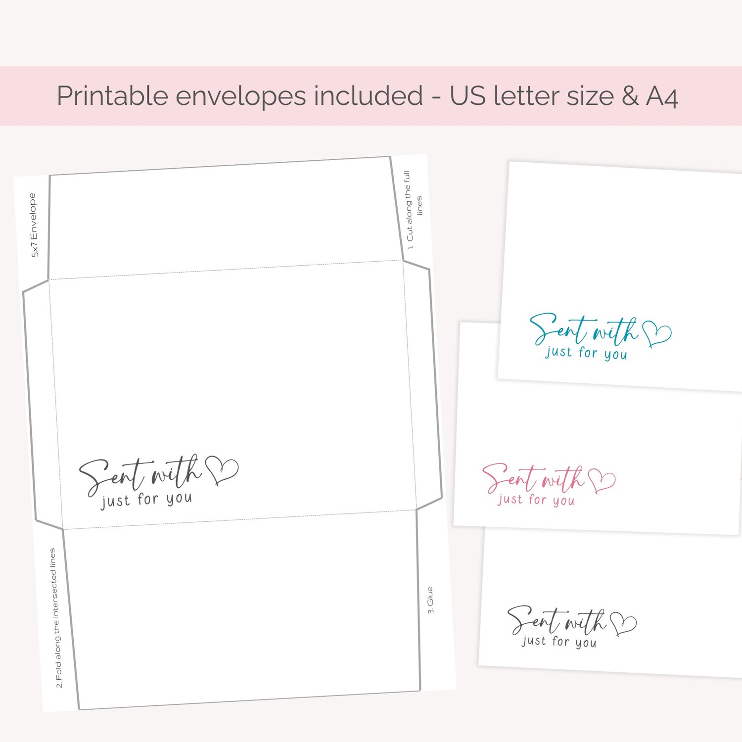 - a ZIP file with printable PDF file for envelopes (US letter size & A4 paper size)