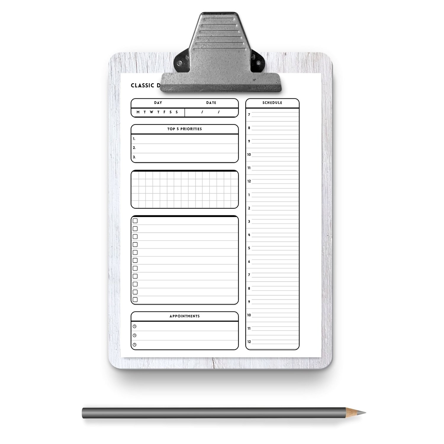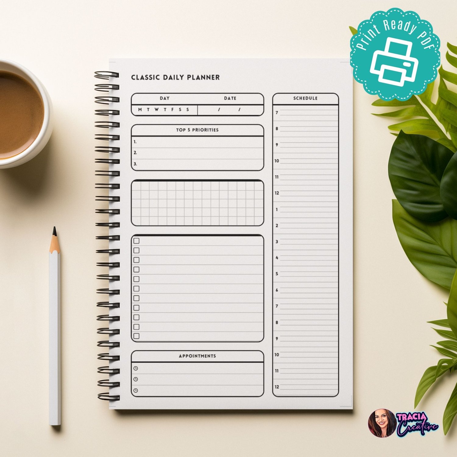 Minimalist Classic Daily Planner - Printable Digital Download PDF