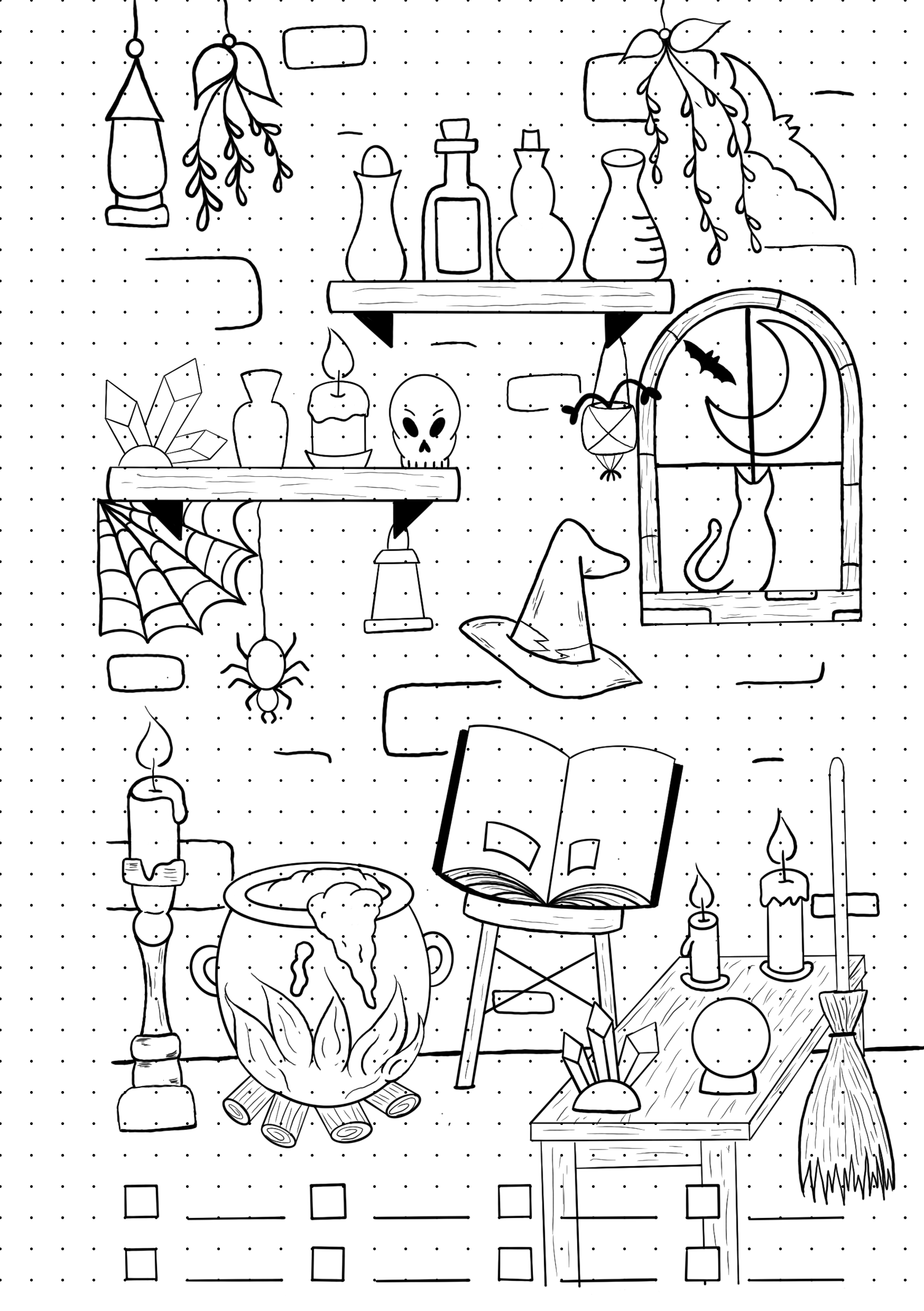 Step into spooky season with the October Mood Tracker: Chapter of Spirits - a hand-drawn witchy-themed spread featuring burning candles, crystals, potions, and much more.