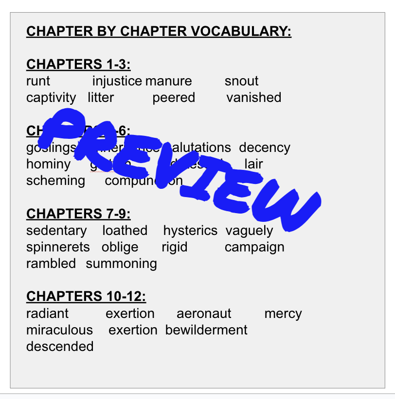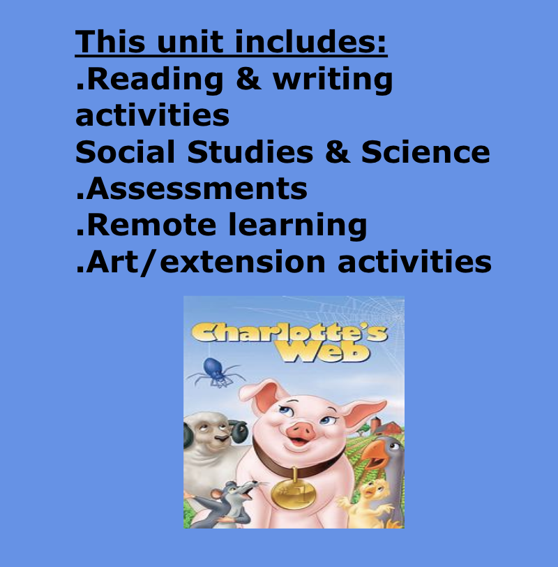 The Charlotte’s Web Novel Study & Activity Unit is a comprehensive teaching guide and student workbook designed to engage young readers in E.B. White’s timeless classic. Packed with reading comprehension activities, vocabulary practice, creative writing prompts, and cross-curricular projects, this unit helps students deepen their understanding of the story’s themes of friendship, loyalty, and perseverance. With discussion questions, character studies, chapter quizzes, and hands-on activities, teachers can easily guide students through meaningful literary analysis while encouraging critical thinking and creativity. Perfect for classroom use or independent study, this resource makes exploring Charlotte’s Web both fun and educational.