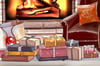 Background is included as a separate file and shows beautiful fireplace with presents embellished with gold and glitter.