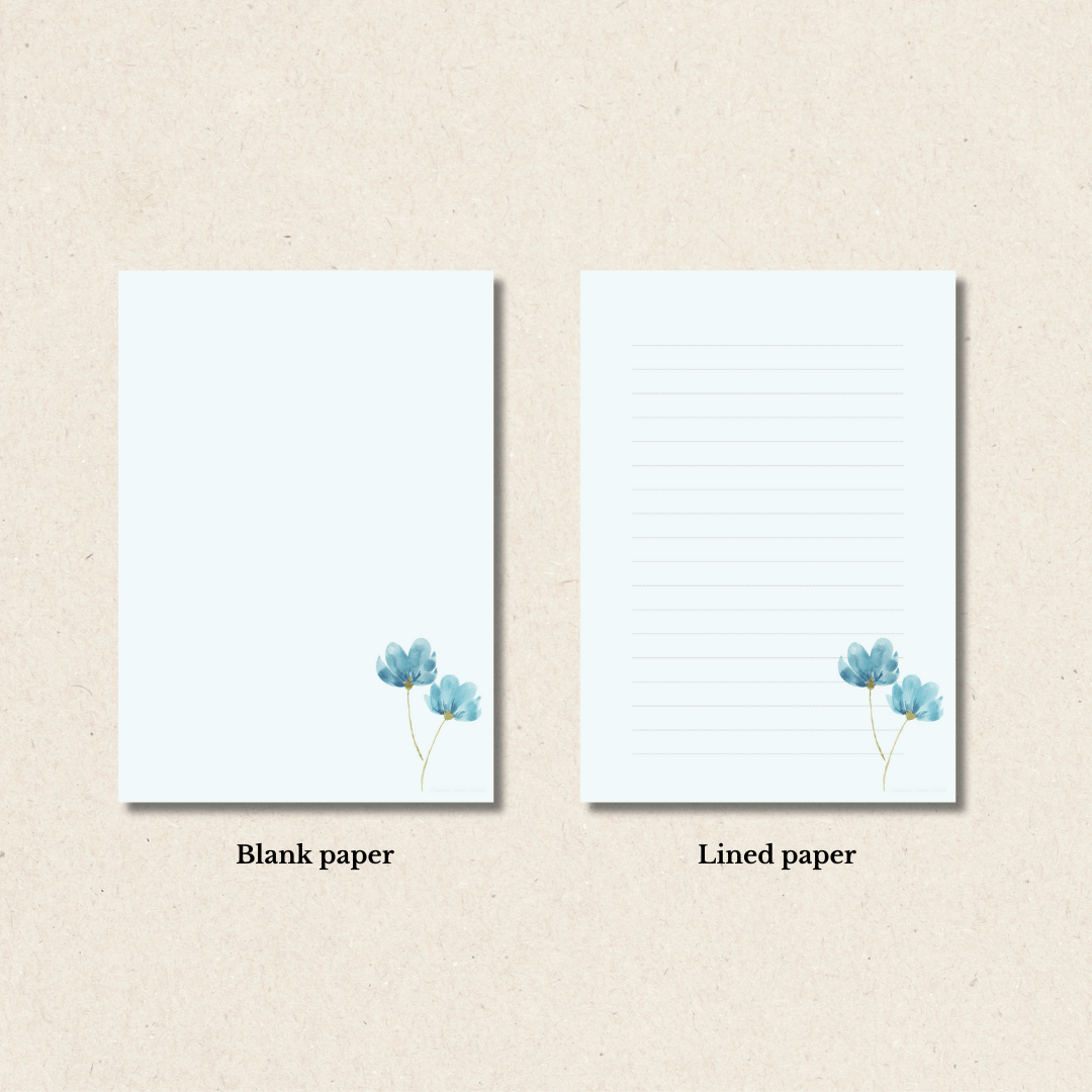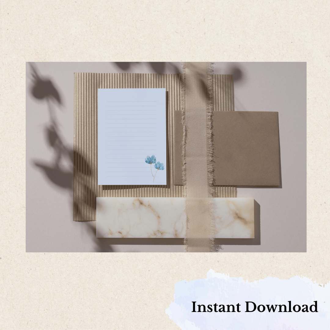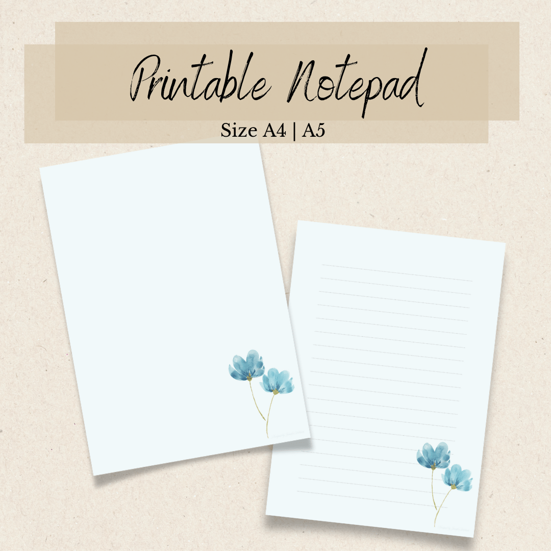 Printable Letter Writing Paper, Custom Notepad with Flowers, Blue Edition, Floral Personalized Notepad, Printable Stationery, Notes Pages, A4 | A5