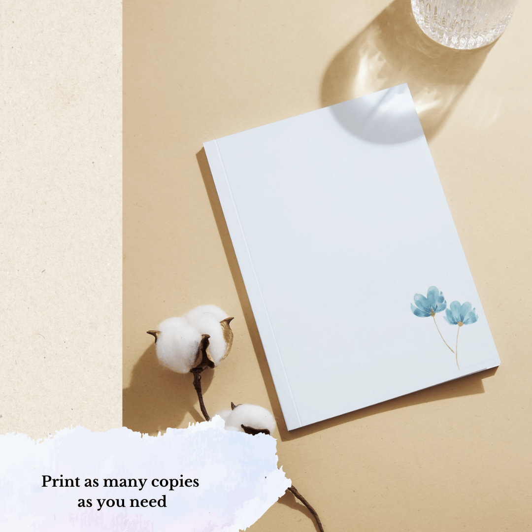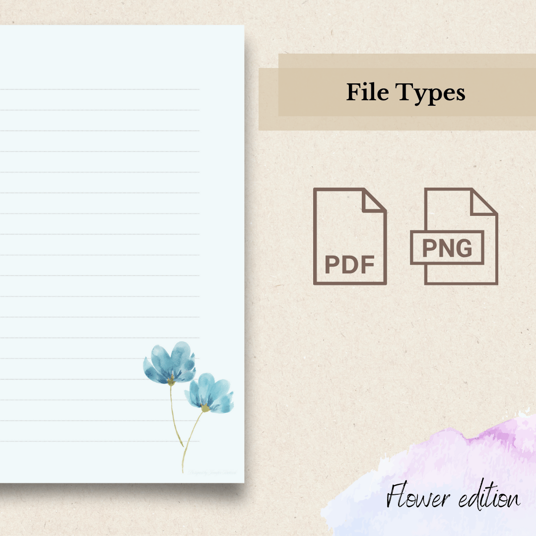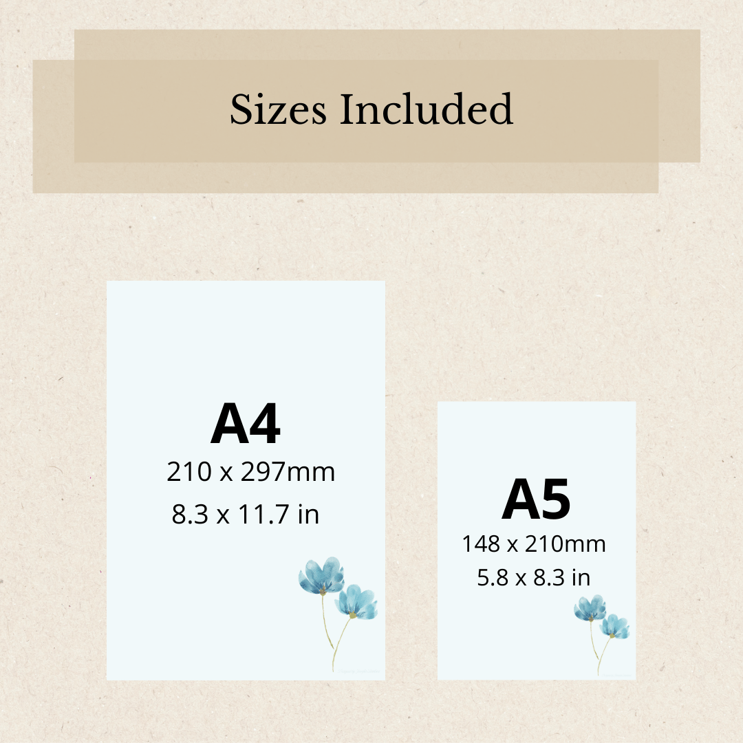 Printable Letter Writing Paper, Custom Notepad with Flowers, Blue Edition, Floral Personalized Notepad, Printable Stationery, Notes Pages, A4 | A5