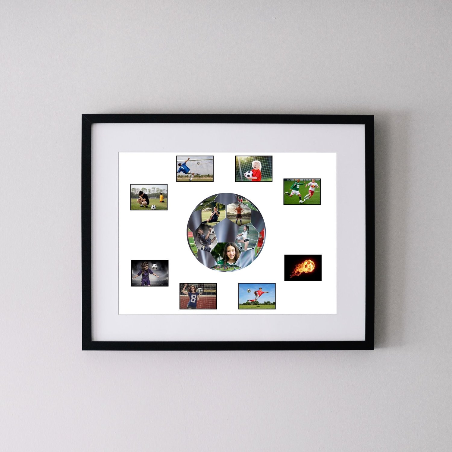 Overview Turn your favorite game shots into a masterpiece with this Custom Soccer Photo Collage Template. This unique design arranges your photos to form the actual shape of a Soccer! Itβs the ultimate creative gift for Senior Night, end-of-season banquets, or a coach's thank-you present. You don't need to be a designerβsimply drag and drop your pictures into the pre-made frames on Canva.