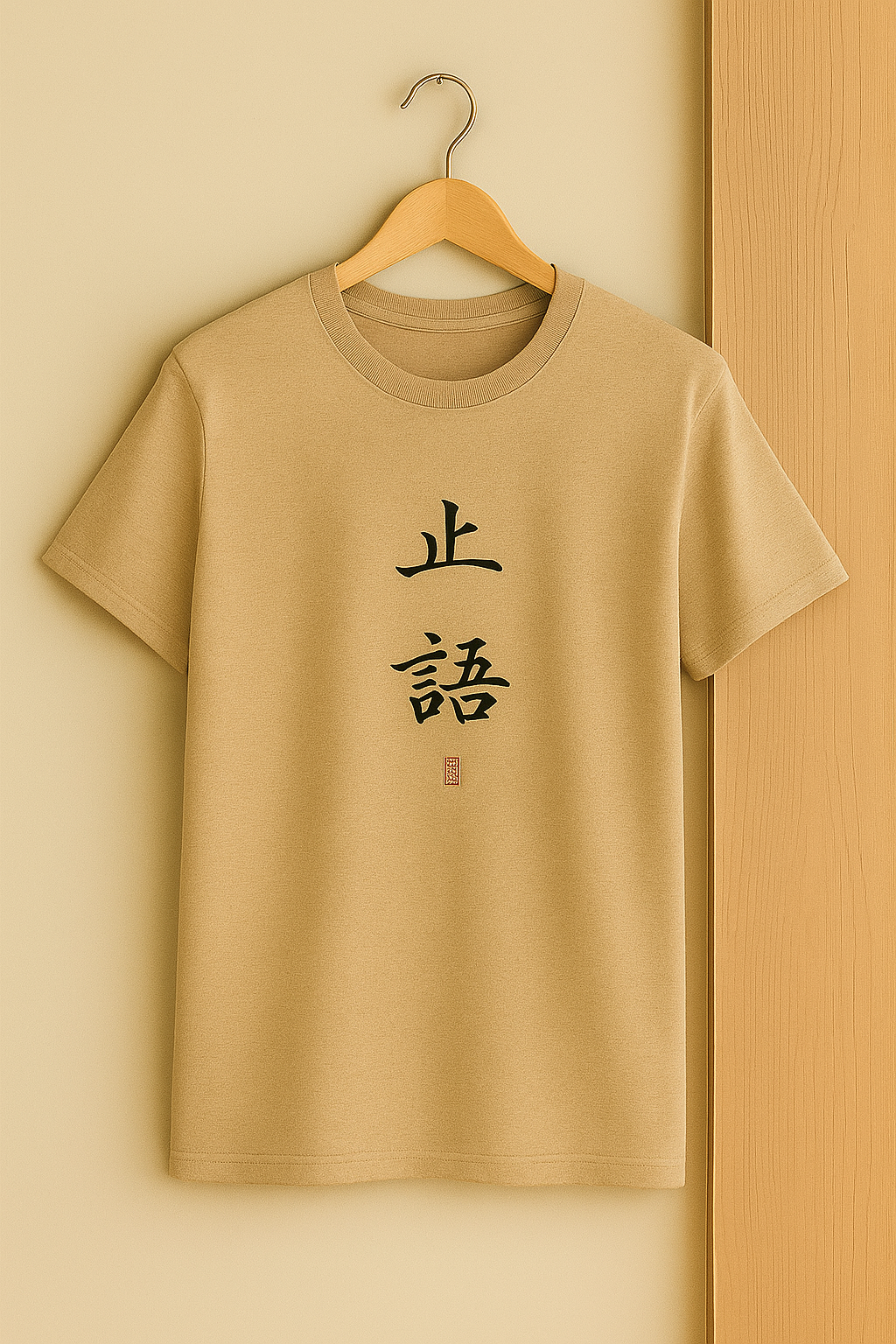 Level up your wardrobe with this stylish minimalist beige T-shirt featuring bold Japanese calligraphy design π€.