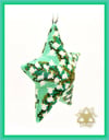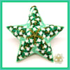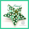 This Lily of the Valley star was requested by many people, and I know why Lily of the Valley is such a favourite flower, with its tiny bells full of big perfume. This 3D peyote stitch star differs slightly from the matching angel and bell, because the pattern is worked in a different direction.Made with five warped square section joined together, I stuffed this with toy stuffing, but it will hold its own shape quite well without stuffing. I used some leftover beads to make a hanging loop but you can use whatever you like.