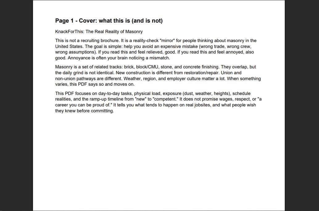 The Real Reality of the Trades — Full Bundle includes all five KnackForThis deep-dive PDFs, written to help adults decide before they commit years of time, money, and physical wear.