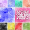 A curated paper pack of backgrounds in large sizes (5000x5000 pixels, JPG, 300 DPI) with watercolor digital brushes & splatter- with a clear canvas look !