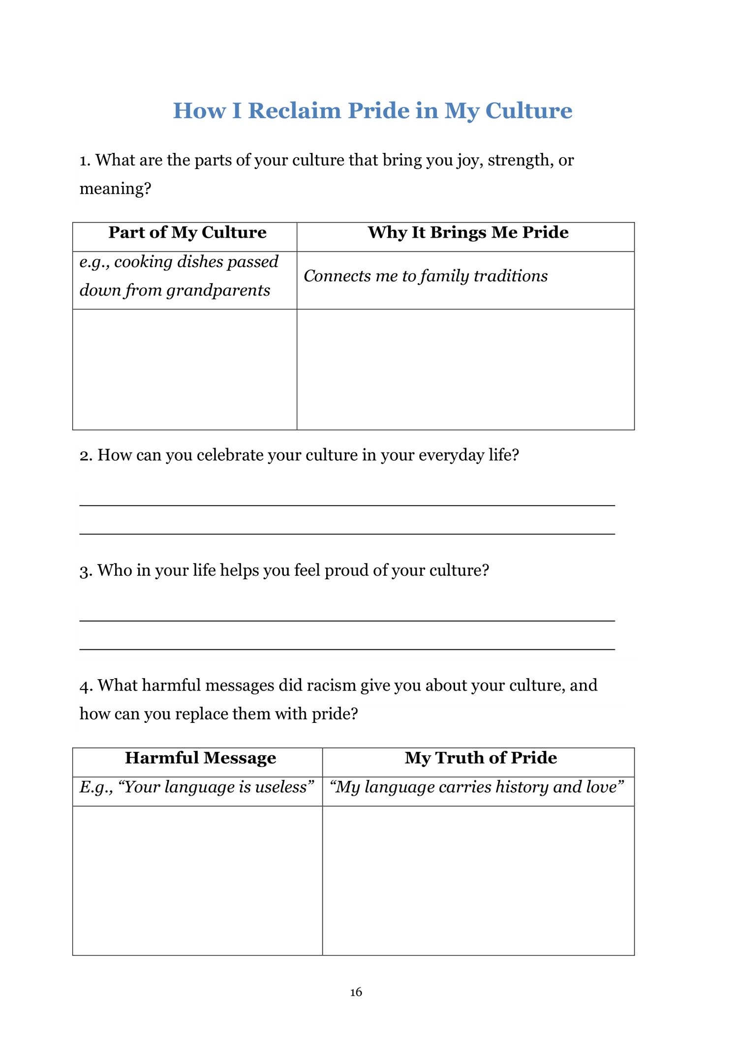 - Support emotional resilience, cultural pride, and personal empowerment