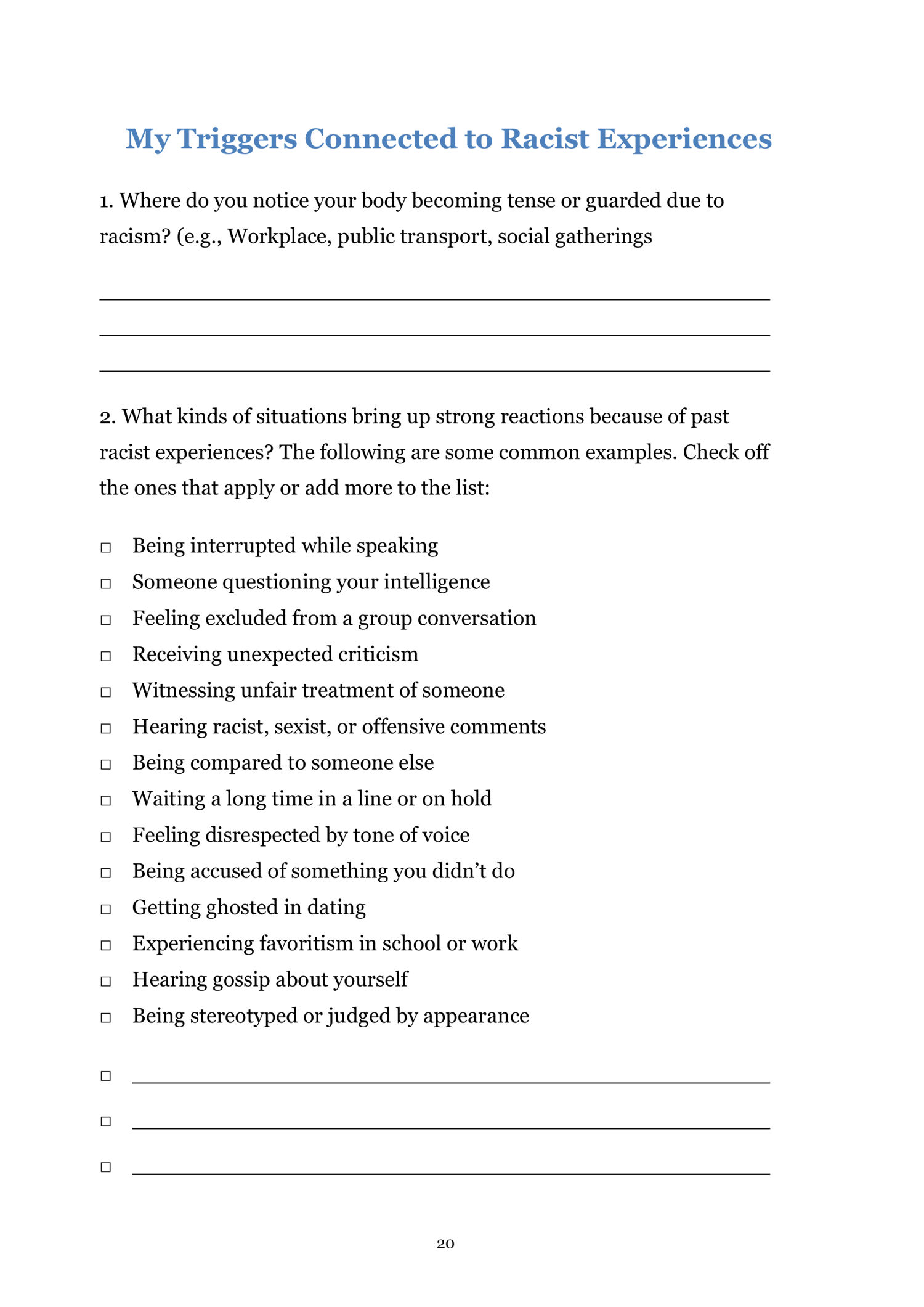 - Help you track the emotional and physical impact of racism on your daily life