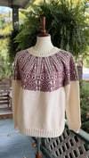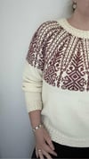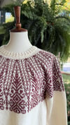 Meet Finito — a timeless, cozy colorwork pullover worked seamlessly from the top down. The round yoke features an elegant stranded motif that radiates outward like woven lace, creating a beautiful balance between simplicity and detail.
