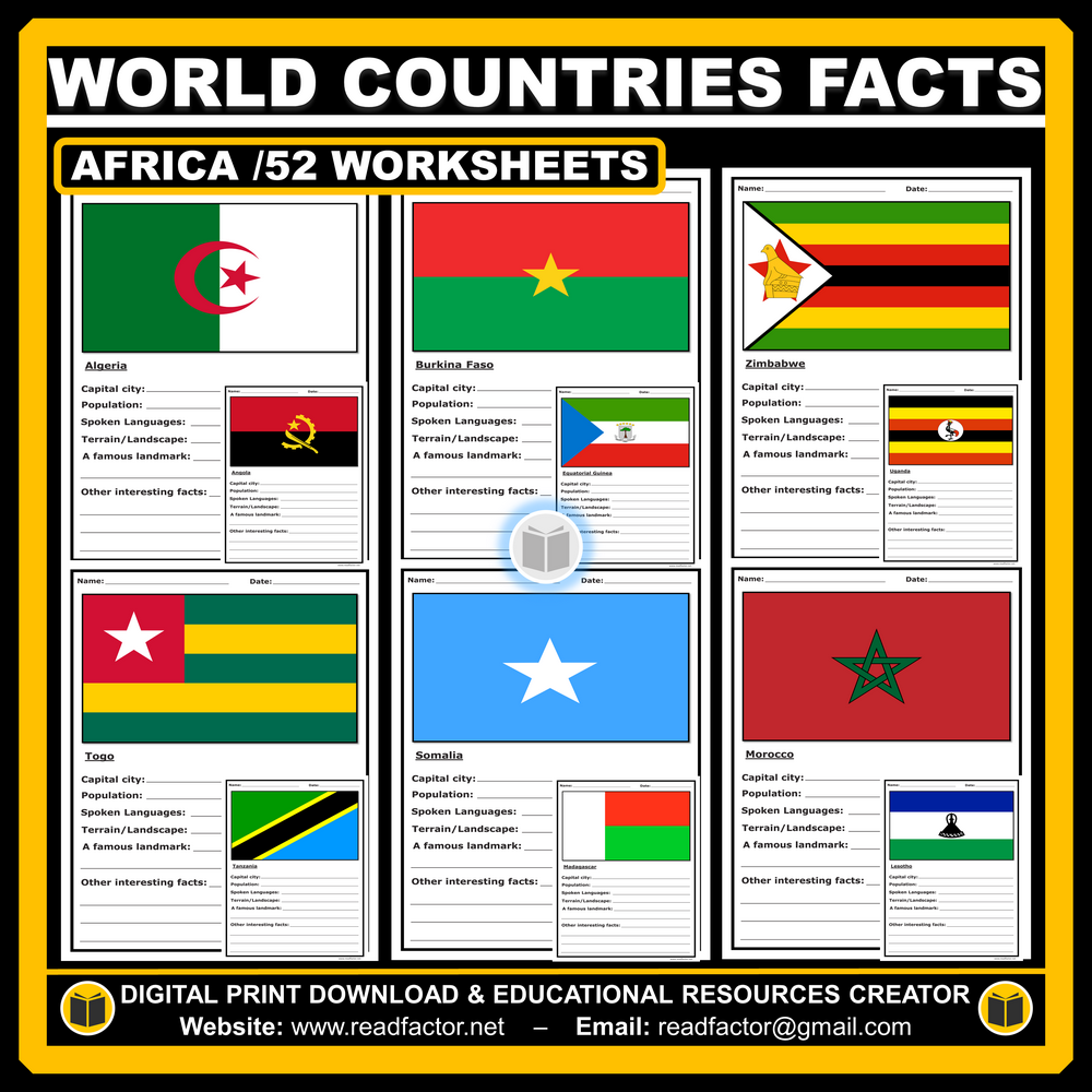 African Countries Facts Activity - 52 worksheets