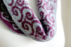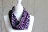 The cowl is worked in stranded/fair isle knitting. The colourwork pattern is charted only, with written instructions for the other rounds. As well as coloured charts there is a page with blank charts that you can print out and colour in with your choice of colours. The pattern also includes a photo tutorial for Kitchener Stitch in purl. The pattern has been tech edited and tested.
