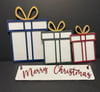 Merry Christmas Presents Set is for our interchangable wagon and includes ascetic 3 Presents with bows and a Merry Christmas Sign with 2 hooks. They can be painted any color option you'd like or order blank to paint! They range in size 3-8" and are laser cut and hand painted if ordering finishedÂ
